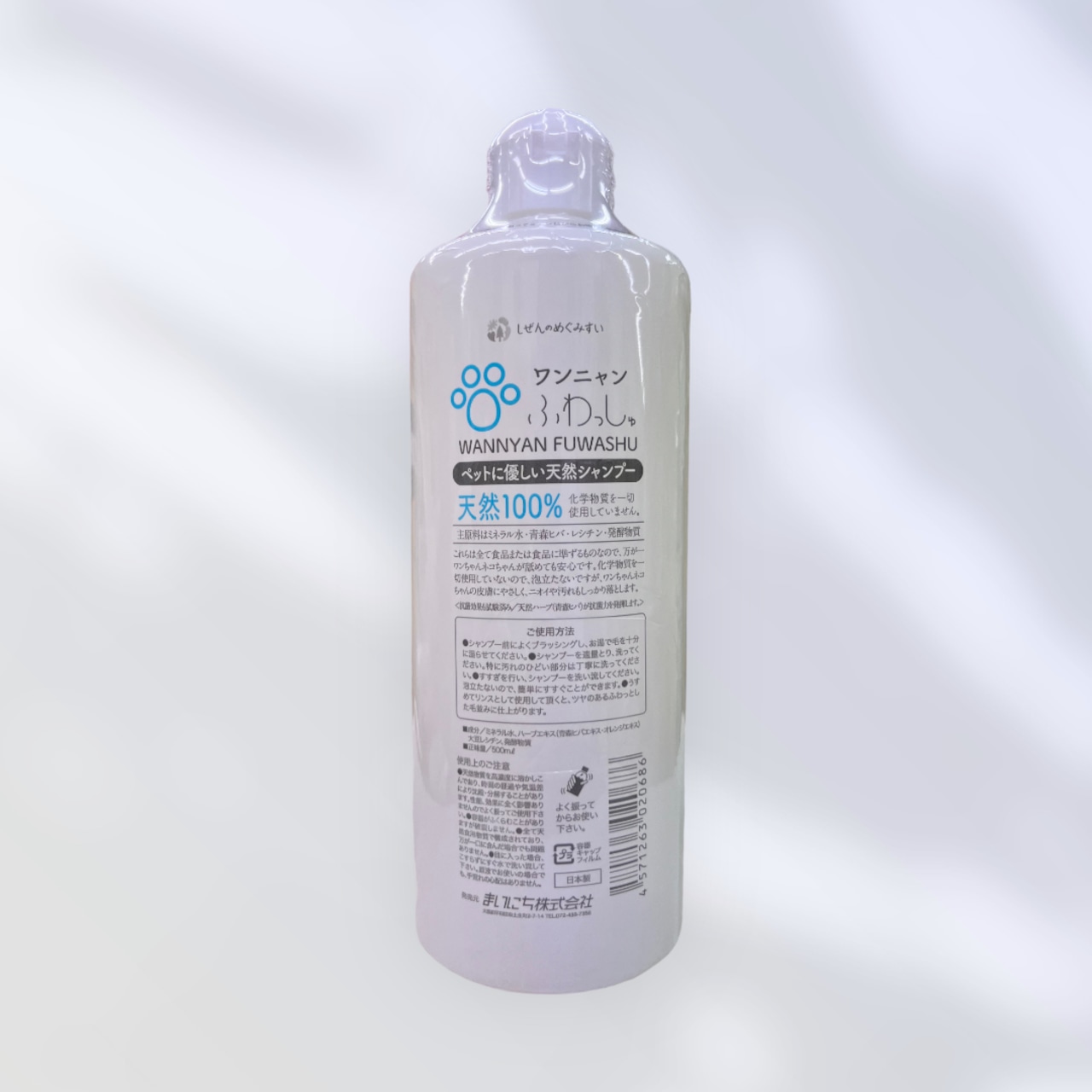ワンニャンふわっしゅは天然成分100%、化学物質不使用のペットシャンプーです。